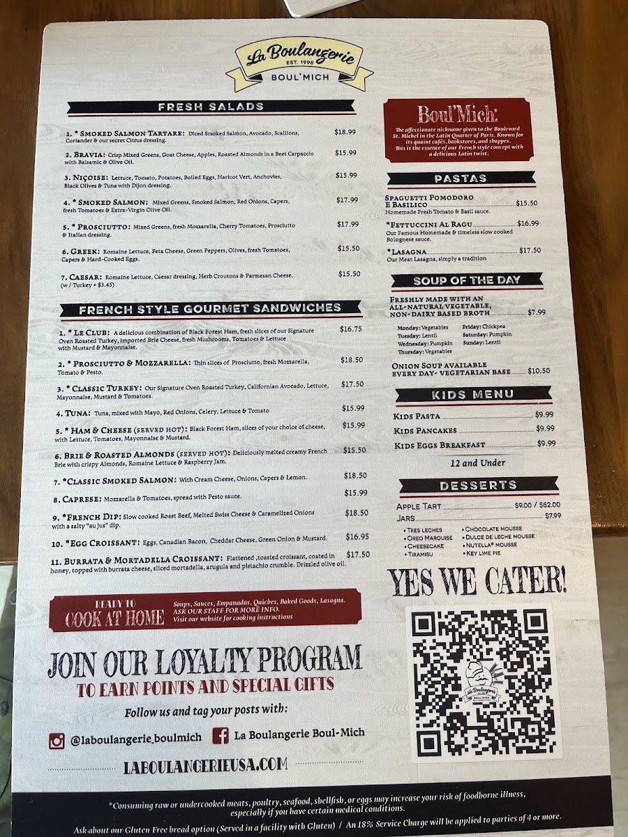Welcome to La Boulangerie Boul'Mich, a delightful culinary haven nestled in Key Biscayne. Our menu epitomizes the art of French baking, showcasing an exquisite selection of pastries and savory dishes.